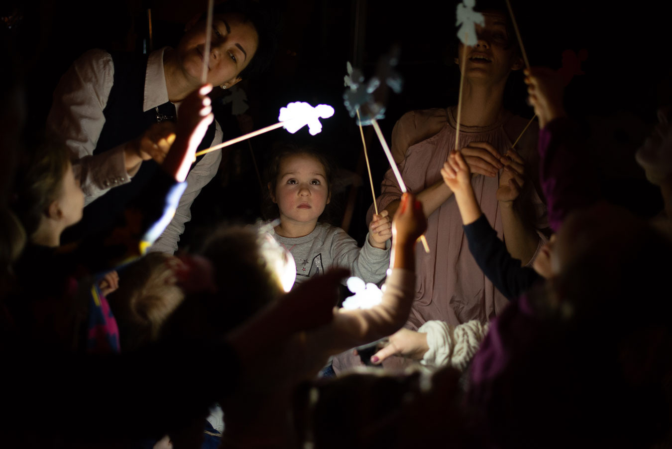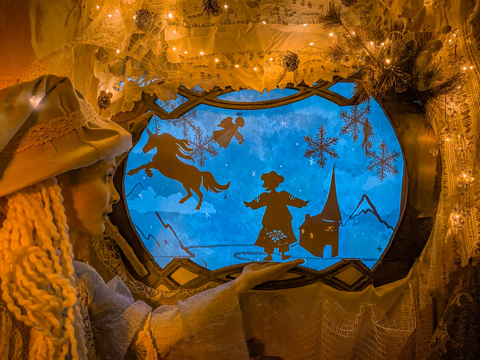 Самое чудесное в праздниках - не только наблюдать, но и участвовать. Наши зрители сами создадут театр теней. Каждому достанется по фигурке в круге возле фонарика, и вот уже по стенам и потолку летят ангелы, птицы, загораются звезды.